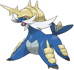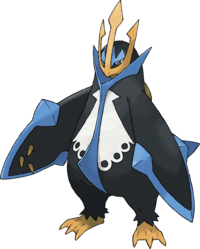 Der Wasserstarter ist diesmal ein Pinguin und bricht daher die Reptil/Lurch Tradition, die ich bis dahin als vorgegeben ansah. Plinfa ist niedlich allerdings auch unspektakulär. Pliprin hat ein interessantes Kronenmuster auf dem Kopf bleibt aber doch stark am Standard Pinguin. Bei Impoleon wird der Pinguin mit dem Abendanzugthema verbunden wodurch man zwar den Pinguin nicht neu erfindet aber eine sehr imposante Erscheinung bekommt. Die Dreizackgesichstkrone lässt es auch gefährlich wirken. Das Pinguinthema ist nicht besonders kreativ allerdings entwickelt es mit Impoleon ein interessantes Finale. 4 von 5 Punkten