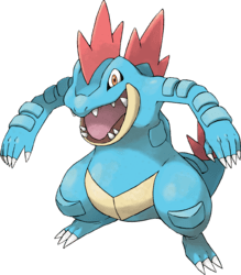 Ich habe keine Ahnung was Endivie darstellen soll. Eine kleine vierbeinige Gurke mit Blatt auf dem Kopf? Davon ab ist es verdammt süß. Wie schon Bisasam ist das Pflanzenpokemon somit nicht direkt einem realen Vorbild zuzuordnen. Ab Lorblatt nimmt es allerdings auch wieder dinosaurierartige Züge an und Meganie ist wohl ein Brontosaurus mit Blumenkragen. Interessant, dass die Gesichtszüge der Finalform immernoch noch freundlich wirken. Ich bin Fan. 5 von 5 Punkten