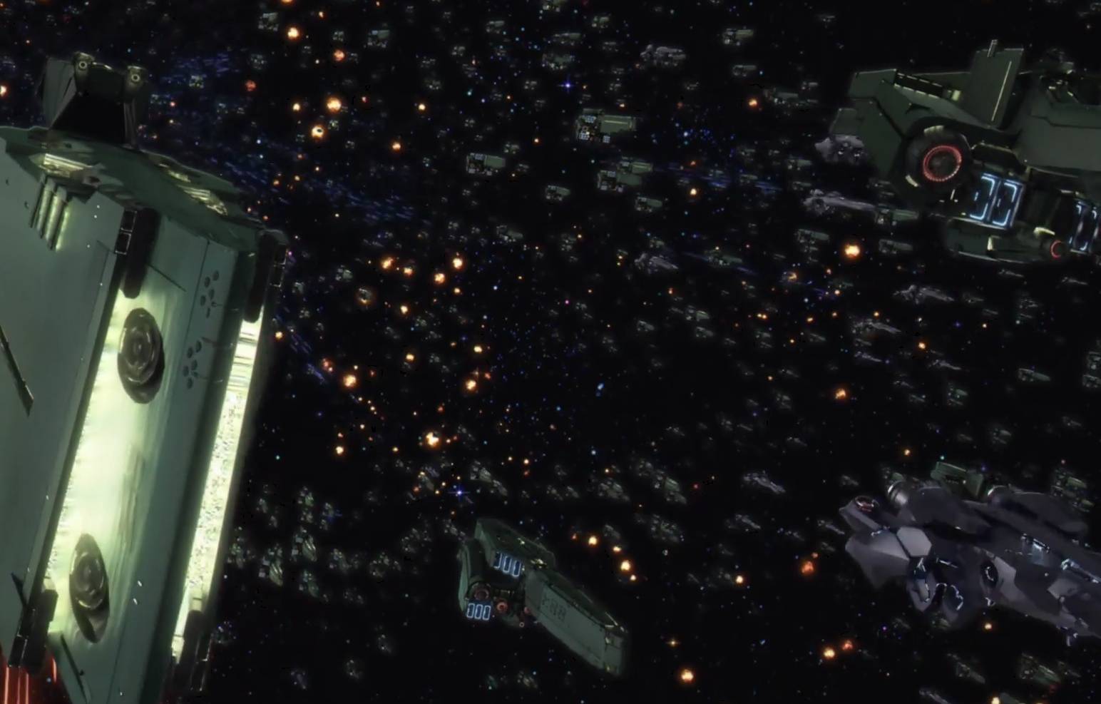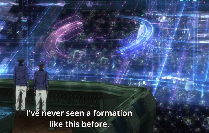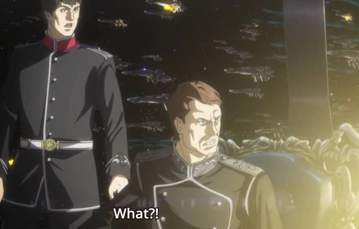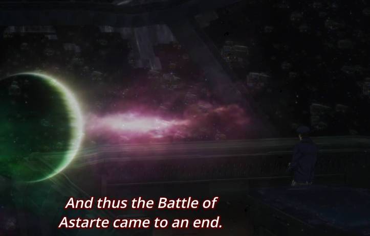 Am Anfang von Folge Zwei geht einige Stunden in die Vergangenheit. Der Astarte Konflikt wird in der ersten Hälfte aus der Sicht der der FPA, im Besonderen von Yang Wenli erzählt. Wir bekommen einen Eindruck von Yang , der nicht so recht in das Militärleben der FPA Flotte zu passen scheint. Ein untergebener bezeichnet in als Helden von El Facil, was ihm offensichtlich unangenehm ist. Der Vorgesetzte von Yang, Paetta, scheint vor Beginn der Schlacht optimistischer Laune zu sein. Aus seiner Sicht ist die FPA dem Kaiserreich zahlenmäßig überlegen und alles andere als ein Sieg kommt nicht in Frage. Aus diesem Grund verwirft er einen Strategievorschlag von Yang, den er als zu passiv und vorsichtig bezeichnet.